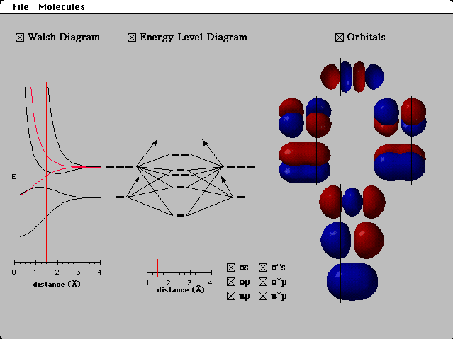 Note that in the real application, the checkboxes allow you to turn items on or off. The red lines on the distance axes refer to the location of the 'hidden' sliders present under them. Click in the image to return to the main screen.